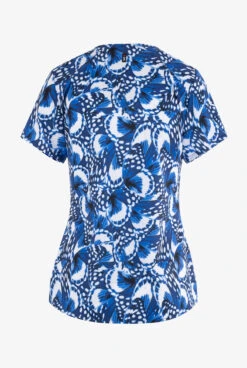 Grey’s Anatomy Spandex Buttterfly Blues Women’s 4-Pocket STRETCH V-Neck Print Scrub Top