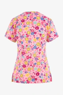 Betsey Johnson Betsy Johnson A Smile A Day Floral Women’s 2-Pocket STRETCH V-Neck Print Scrub Top