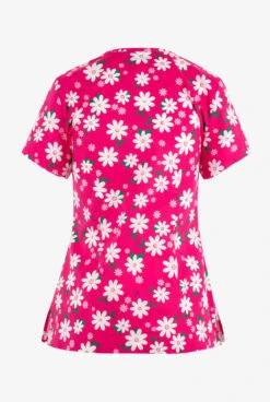 Betsey Johnson Betsy Johnson Happy Daisy Floral Women’s 2-Pocket STRETCH V-Neck Print Scrub Top