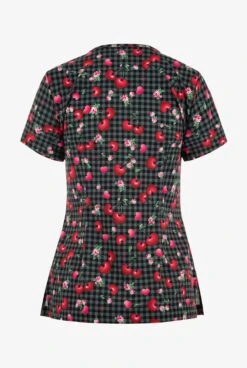 Betsey Johnson Cozy Roses Plaid Women’s 2-Pocket STRETCH Y-Neck Print Scrub Top
