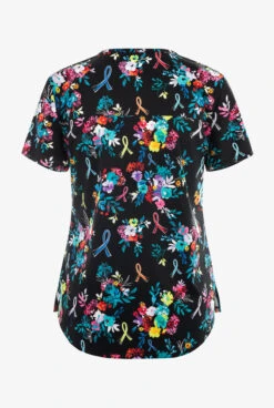 Cherokee Genuine Hopeful Bouquets Pink Ribbon Women’s 2-Pocket STRETCH V-Neck Print Scrub Top