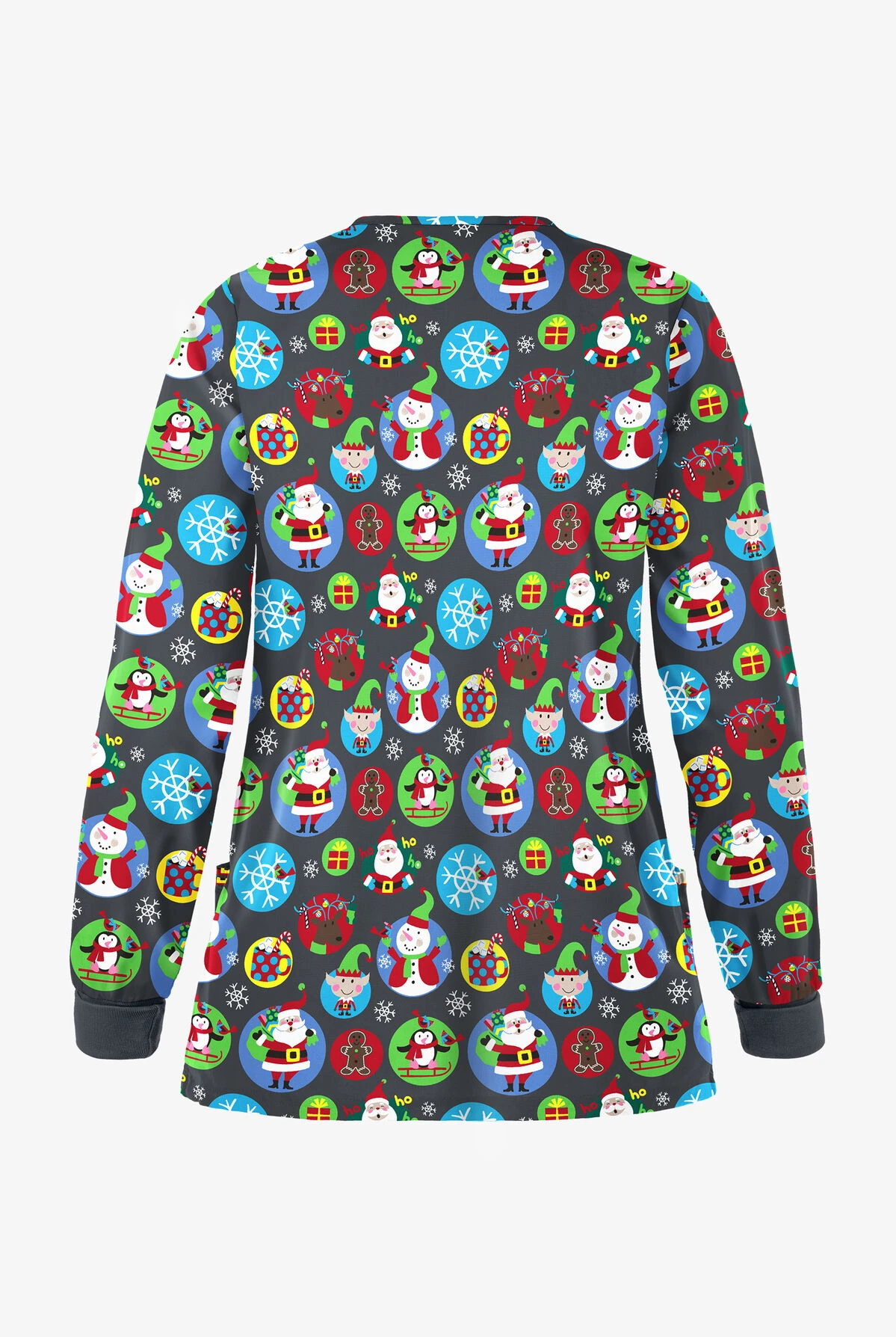 Butter-Soft Christmas Stickers Pewter Women’s 2-Pocket Warm-Up Print Scrub Jacket