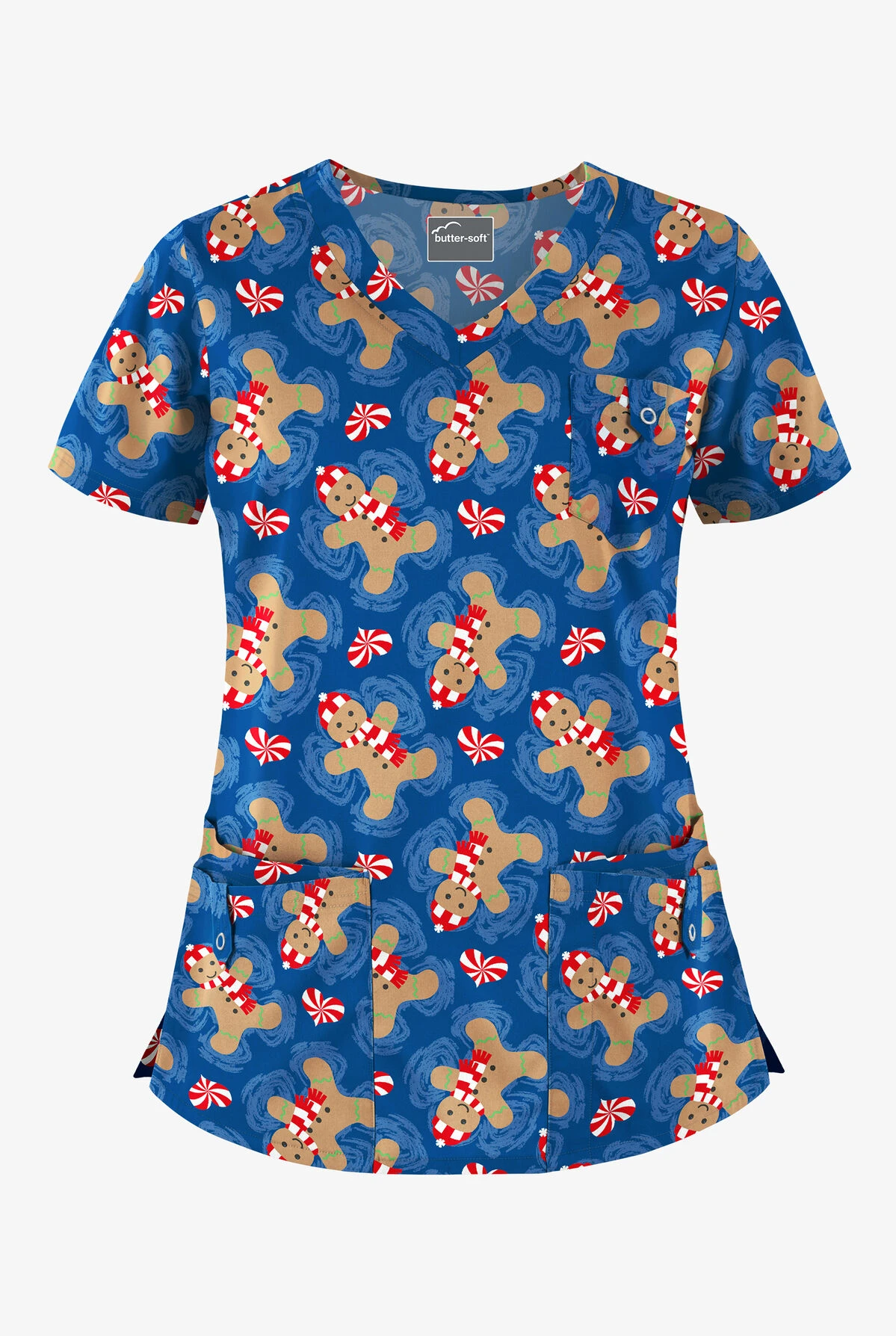 Butter-Soft Cookie Angel Royal Women’s 5-Pocket Rounded V-Neck Print Scrub Top