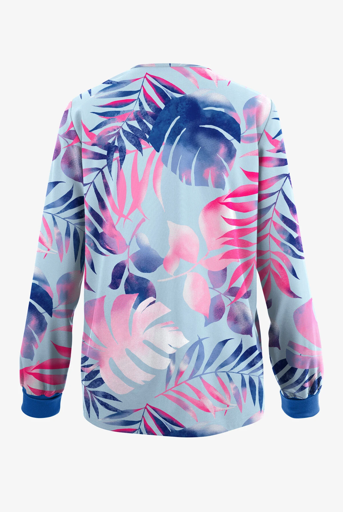 Consider this your go-to warm-up scrub jacket. Simple, clean design is universally flattering and has just enough storage with its two oversized patch pockets and third smaller pocket, ideal for phones, in wearers right side pocket.
