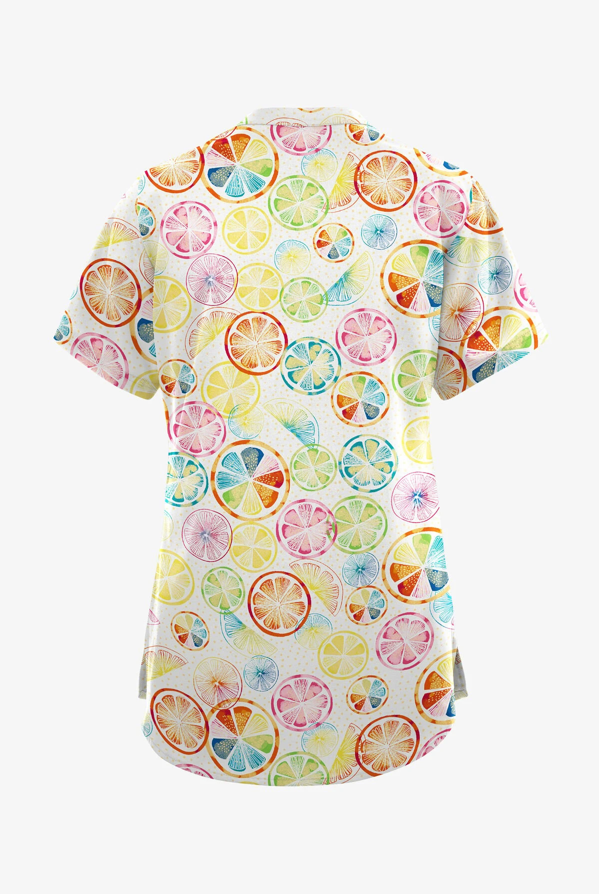 Details, details, details! Our women’s scrub top has them all. From the Mandarin collar to the 3-snap henley placket to the decorative piping—this style is truly unique.