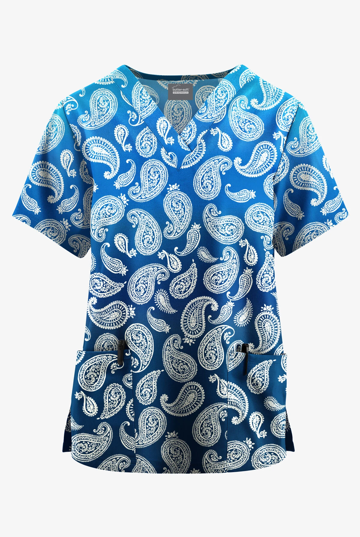 Butter-Soft Originals Paisley Gradient Women’s 2-Pocket Classic Fit V-Neck Printed Scrub Top