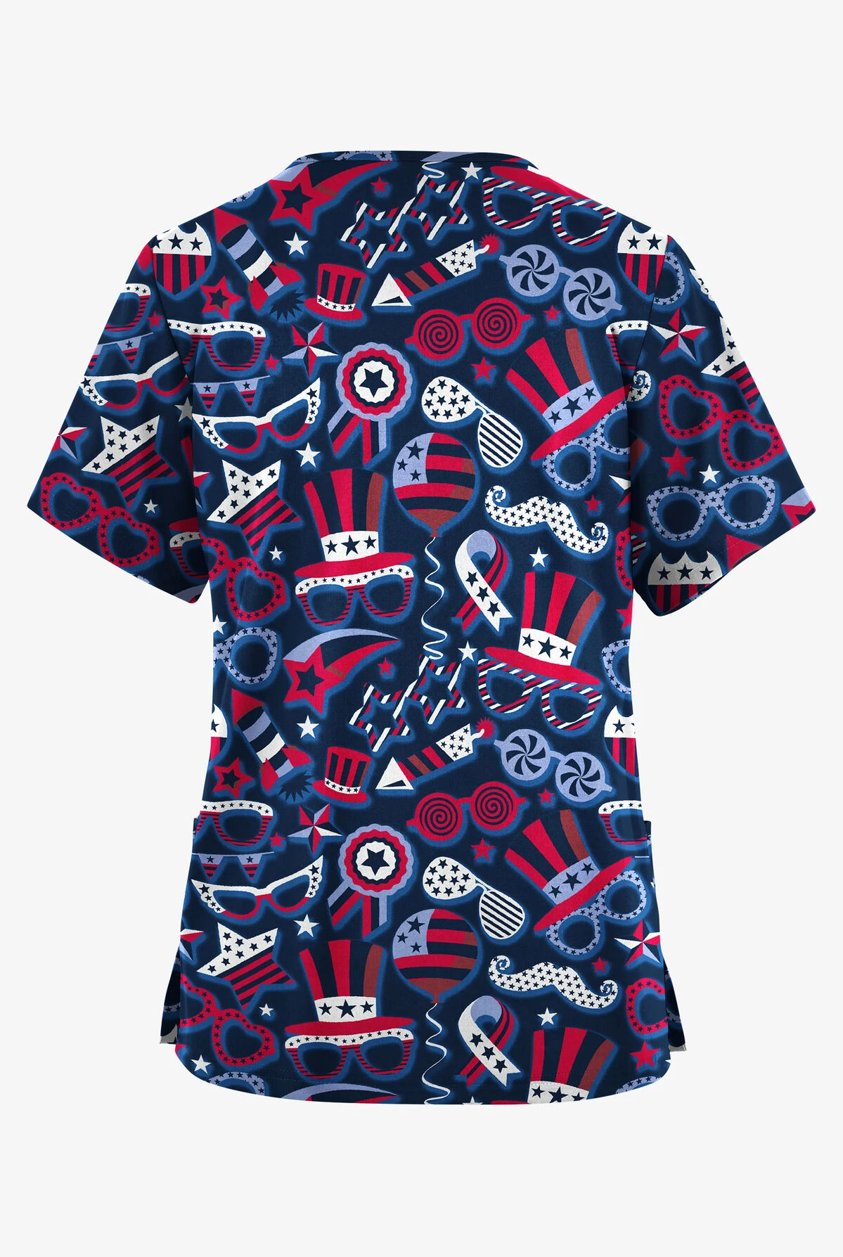 - Features red-white-and-blue hats, fireworks, stars and sunglasses