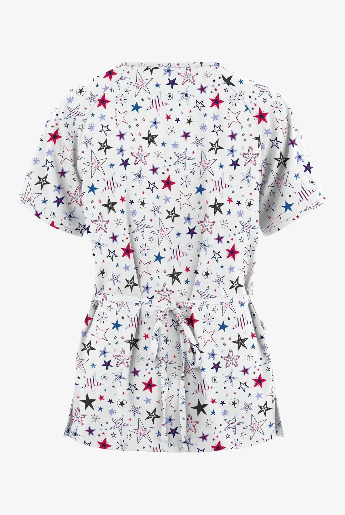 Featuring a worry-free mock wrap style (sewn shut!), our new scrub top offers a flattering fit with an adjustable tie at the back. Side vents keep it comfy around the hips, and patch pockets are there for the essentials.
