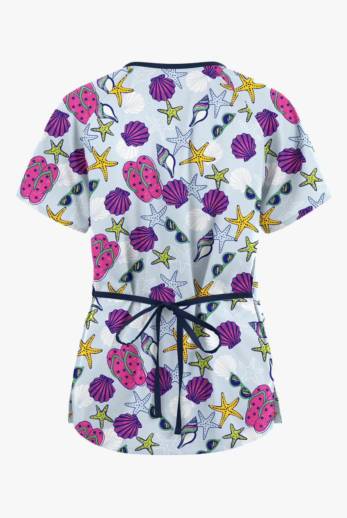 Featuring a worry-free mock wrap style (sewn shut!), our new scrub top offers a flattering fit with an adjustable tie at the back. Side vents keep it comfy around the hips, and patch pockets are there for the essentials.
