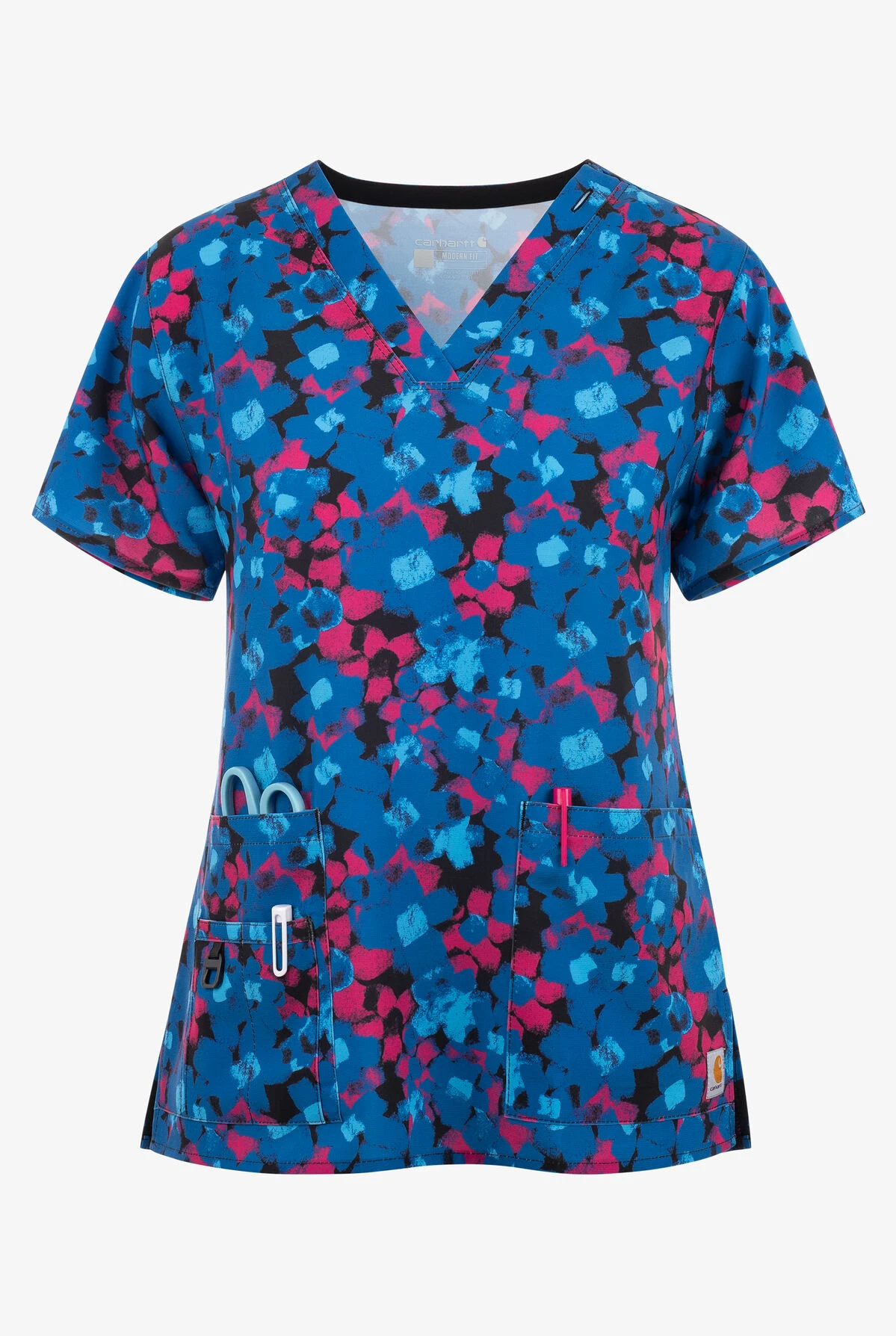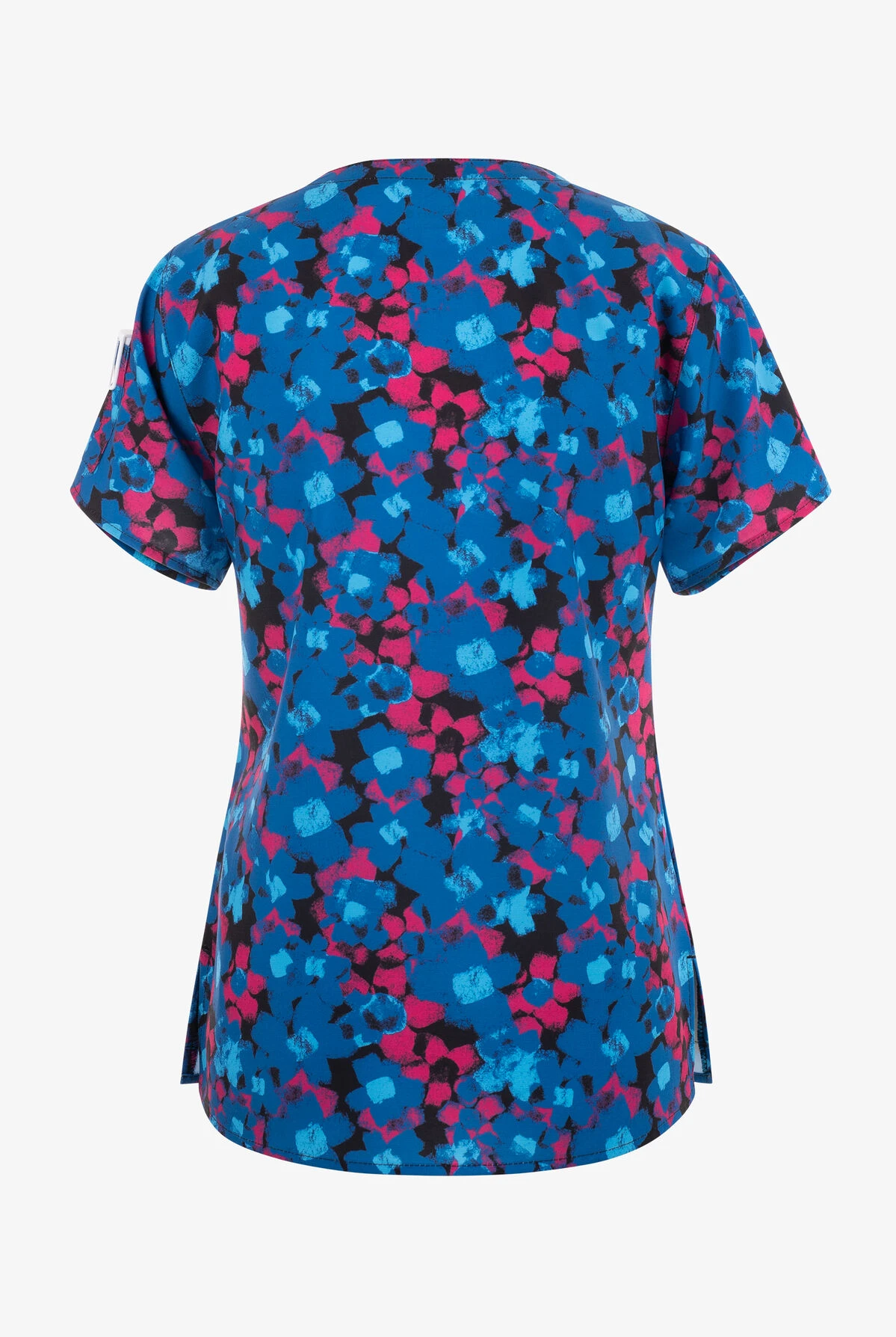 - Geometric floral in duo tone blue with splashes of Fuchsia on black background