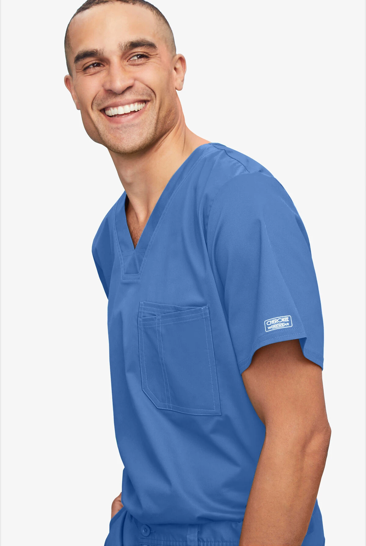- 1 left double chest pocket with pen slot