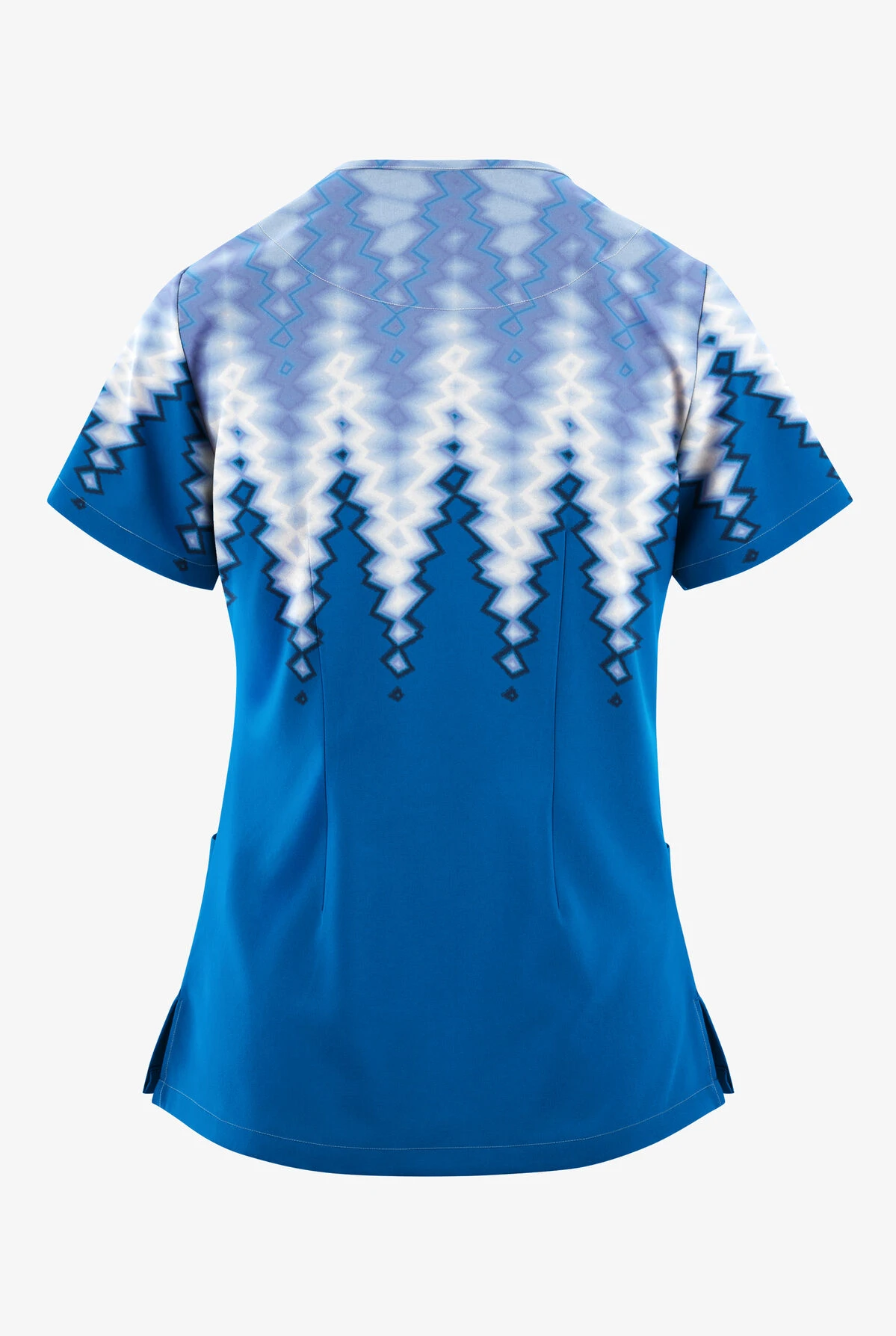 The Easy Stretch by Butter-Soft™ dipped royal women’s 2-pocket v-neck print scrub top is a great choice for any nursing wardrobe! This top has a contemporary fit with flattering ‘v’ neckline style. For storage it has two roomy front pockets and side vents for greater range of motion. It has back darts on garment for flattering fit. Fabric content is 93/7 poly/spandex.