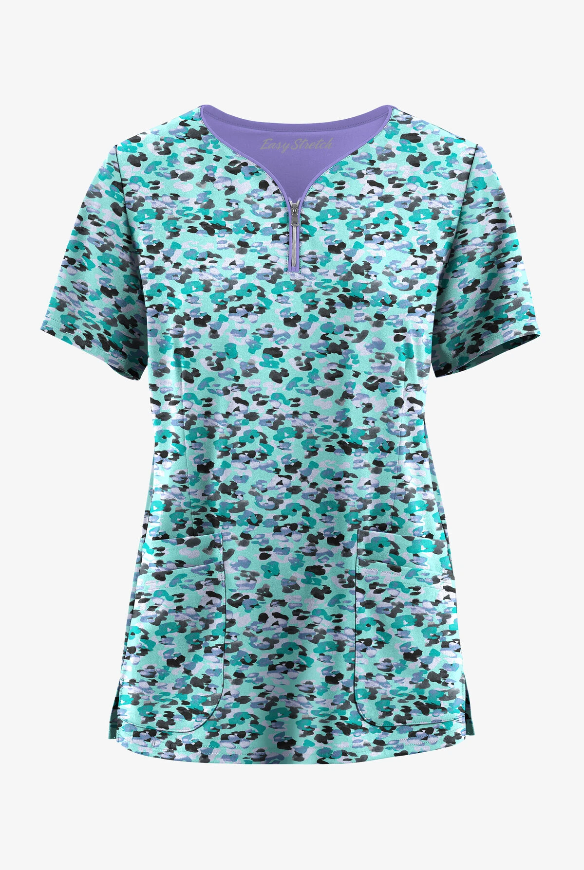 Versatility! You love it and so do we. A shiny nickel zipper at the curvy v neckline of this cute top gives you styling options. Darts front and back give it great shape. And pockets!