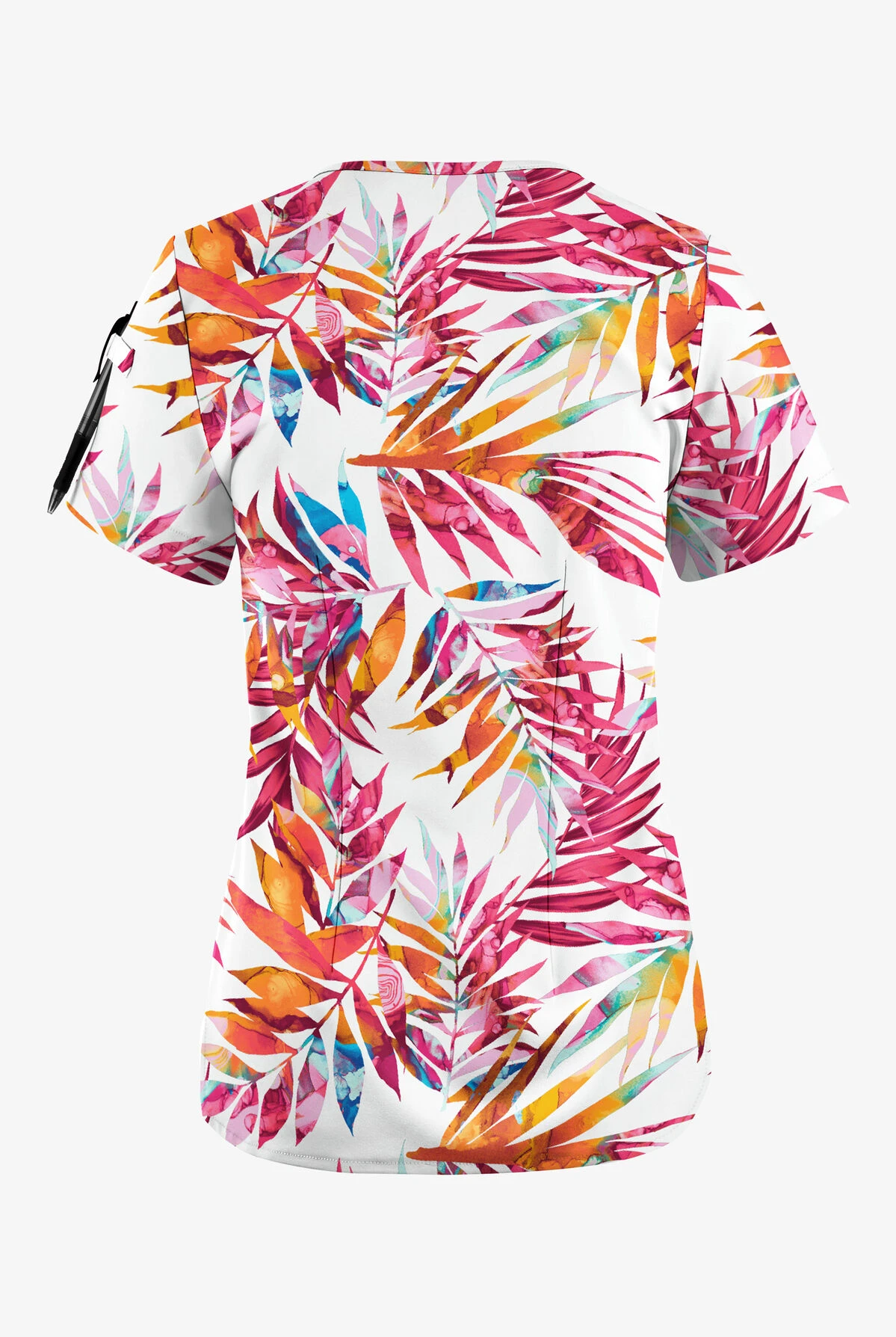 Only @UA® worn tucked in our out, our scallop-neck scrub top is perfect either way. Its versatility is complemented by the practicality of multiple loops and a single chest pocket. Neckline is divine! Easy Stretch by Butter-Soft scrub collection is designed for a modern look and easy fit for very long shifts and made with performance 4-way stretch comfort fabric.