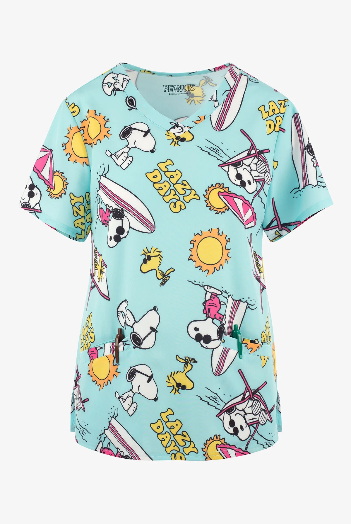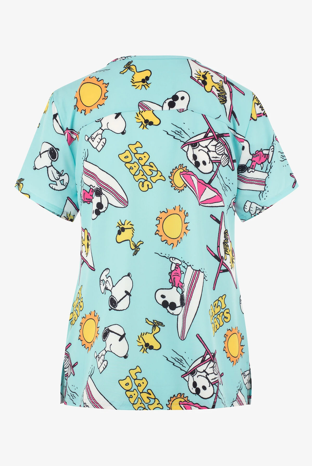 - From the comic strip Peanuts, Snoopy and Woodstock lounging around at the beach in shades on a light turquoise background