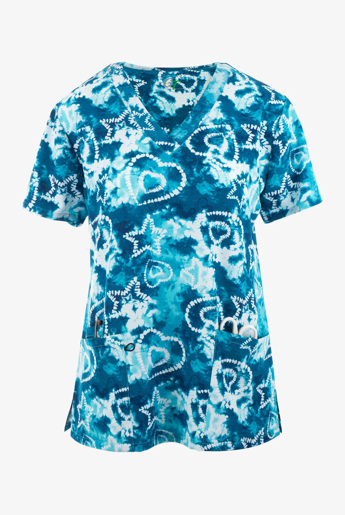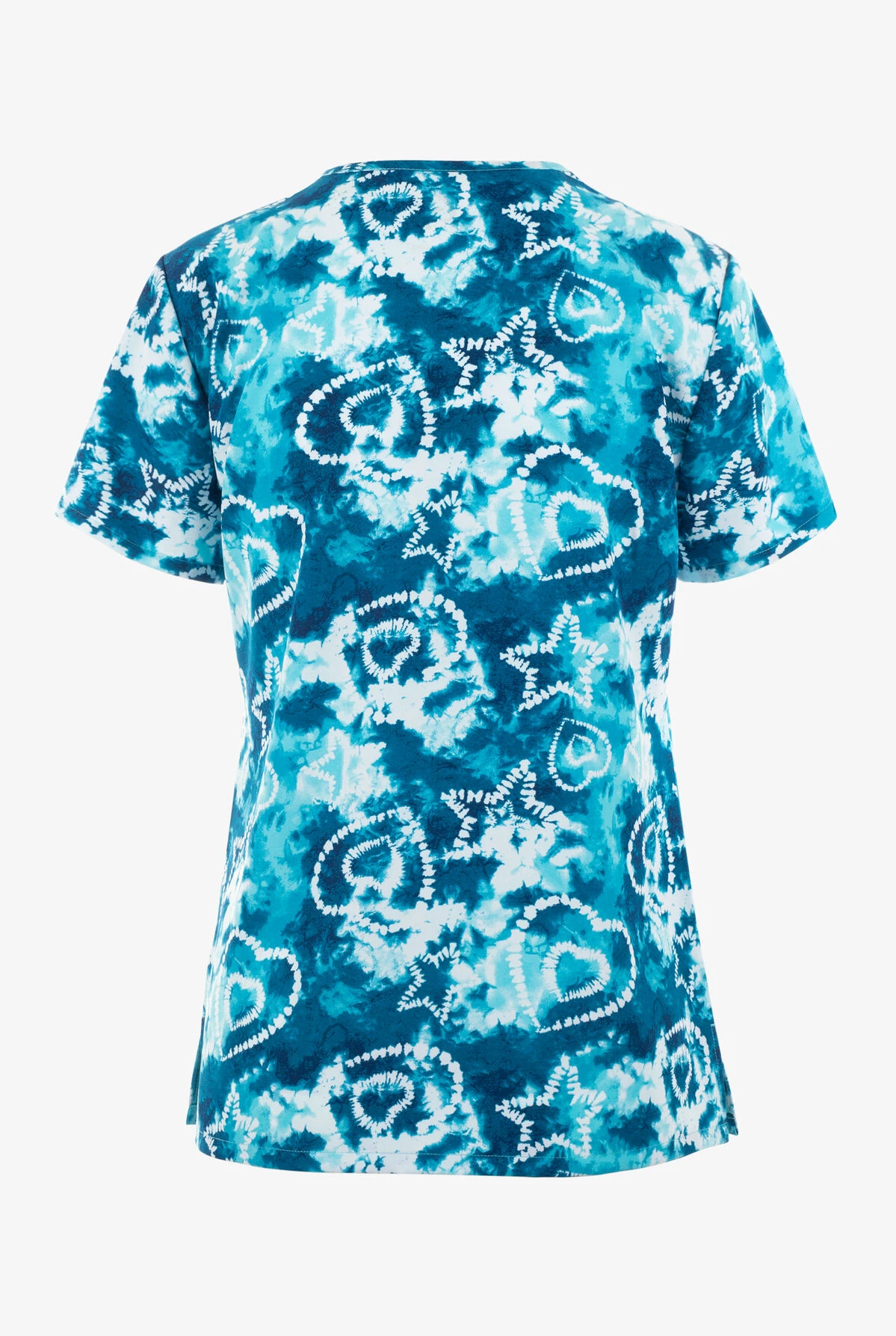 Easy STRETCH By Butter-Softâ„¢ Rotterdam Ikat Navy Women’s 2-Pocket V-Neck Tuck-In Print Scrub Top
