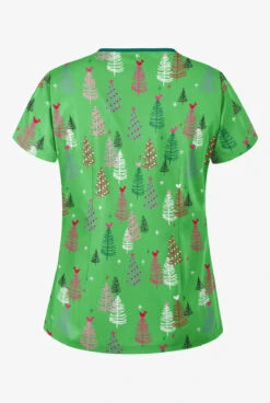 Butter-Soft Joyful Snowman Grass Green Women’s 4-Pocket V Notch-Neck Printed Scrub Top