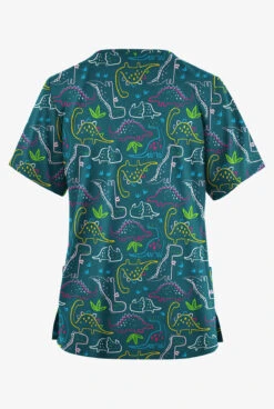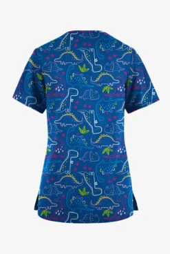Butter-Soft Originals Dino Park Royal Women’s 7-Pocket Curved V-Neck Printed Scrub Top