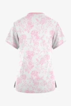 Butter-Soft Originals Etched Roses Blush Women’s 7-Pocket Curved V-Neck Printed Scrub Top