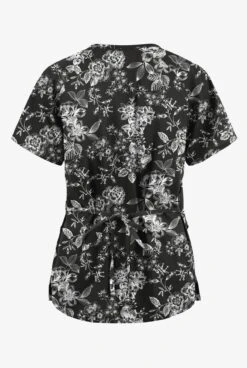 Butter-Soft Originals Etched Roses Women’s 3-Pocket Mock Wrap With Ties Printed Scrub Top
