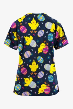 Butter-Soft Originals Easter Morning Navy Women’s 3-Pocket Mock Wrap Raglan Sleeve Printed Scrub Top