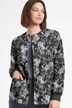 Butter-Soft Originals Etched Roses Women’s 3-Pocket Warm-Up Printed Scrub Jacket