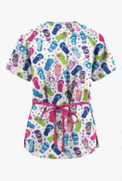 Butter-Soft Originals Flip Flop Fun Pewter Women’s 2-Pocket Classic Fit V-Neck Printed Scrub Top