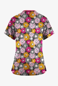 Butter-Soft Originals Pop Of Daisies Women’s 3-Pocket Criss Cross Printed Scrub Top