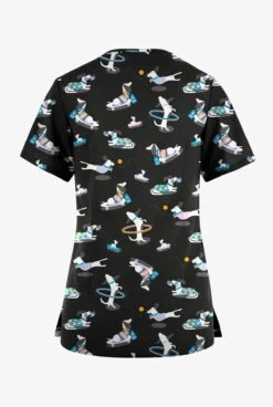 Butter-Soft Originals Playful Dachshunds Women’s 7-Pocket Curved V-Neck Printed Scrub Top