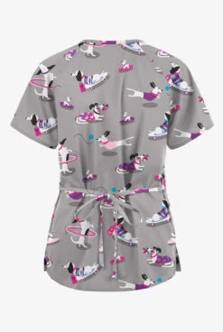 Butter-Soft Originals Paw Friends Pewter Women’s 3-Pocket Mock Wrap With Ties Printed Scrub TopĀ