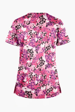 Butter-Soft Puzzle Cats Women’s 2-Pocket Mock Wrap Printed Scrub Top