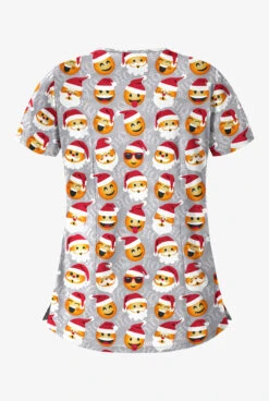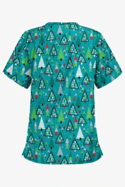 Butter-Soft Winter Breeze Red Women’s 2-Pocket Key-Hole Neck Detailed Print Scrub Top