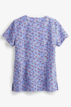 Betsey Johnson Tropical Flamingo Bell Women’s 2-Pocket V-Neck Print Scrub Top