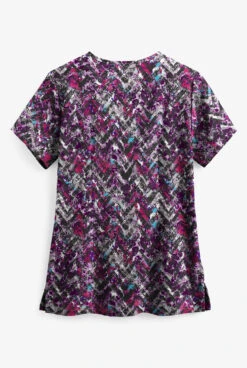 Easy STRETCH By Butter-Soft™ Distressed Chevron Eggplant Women’s 4-Pocket V-Neck Print Scrub Top