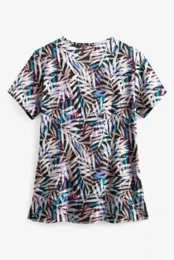 Easy STRETCH By Butter-Soft™ Falling Fronds Onyx Black Printed Women’s 4-Pocket V-Neck Scrub Top