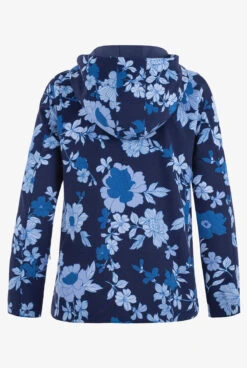 Easy STRETCH By Butter-Soft™ Paris Floral Navy Women’s 5-Pocket Zip-Front Print Scrub Hoodie