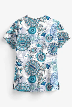 Easy STRETCH By Butter-Soft™ Rotterdam Ikat Turquoise Women’s 4-Pocket V-Neck Print Scrub Top