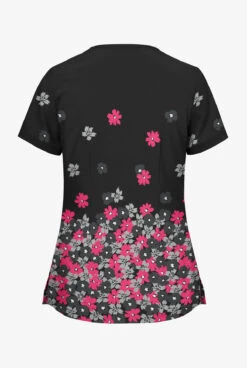 UA Best Buy Scrubs Tropical Oasis Black Print Women’s 2-Pocket Mock Wrap Scrub Top