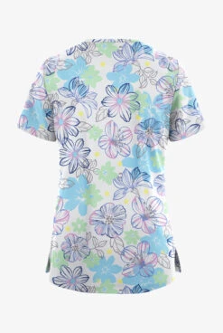 UA Butter-Soft STRETCH Floral Mirage Caribbean Blue Women’s 2-Pocket V-Neck Printed Scrub Top