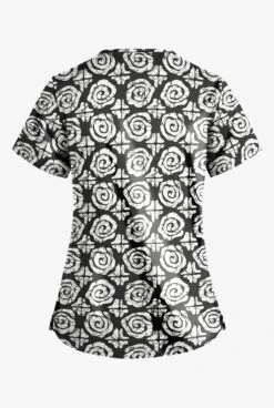 UA Butter-Soft STRETCH Desert Rose Black Printed Women’s 6-Pocket Peasant Style Scrub Top