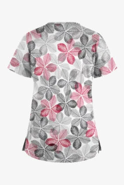 UA Butter-Soft STRETCH Subtle Leaves Silver Women’s 4-Pocket Crisscross Printed Scrub Top