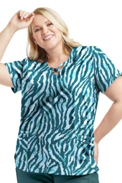 UA Butter-Soft STRETCH Urban Animal Turquoise Women’s 4-Pocket Crisscross Printed Scrub Top