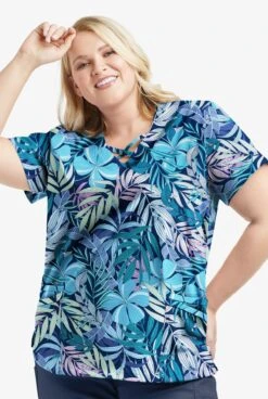 UA Butter-Soft STRETCH Tropical Mix Women’s 6-Pocket Peasant Style Printed Scrub Top