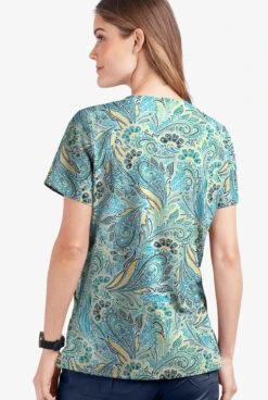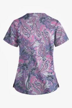 UA Butter-Soft STRETCH Vienna Paisley Silver Women’s 6-Pocket Peasant Style Print Scrub Top