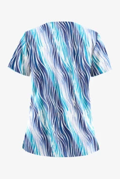 UA Butter-Soft STRETCH Water Waves Women’s 2-Pocket V-Neck Print Scrub Top