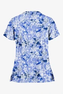 Butter-Soft Cosmic Stars Ceil Women’s 2-Pocket Key-Hole Neck Detailed Print Scrub Top