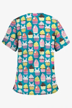 UA Easter Treats Turquoise Women’s 3-Pocket V-Neck Print Scrub Top