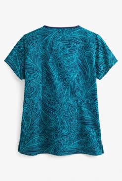 UA Paisley Delight Turquoise Women’s 4-Pocket Princess Seam Print Scrub Top