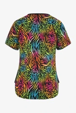 Zavate Ava Therese Bold Moves Animal Women’s 2-Pocket STRETCH V-Neck Print Scrub Top