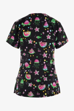 Zavate Ava Therese One In A Melon Sea Life Women’s 2-Pocket STRETCH V-Neck Print Scrub Top